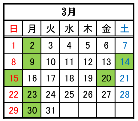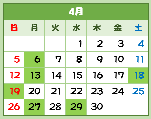 緑は閉館日になります。